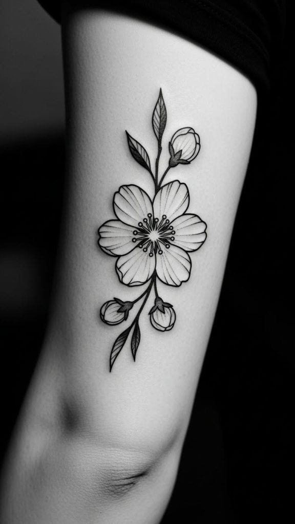 Color isn’t mandatory. A cherry blossom tattoo black and white design can be just as striking—sometimes even more.