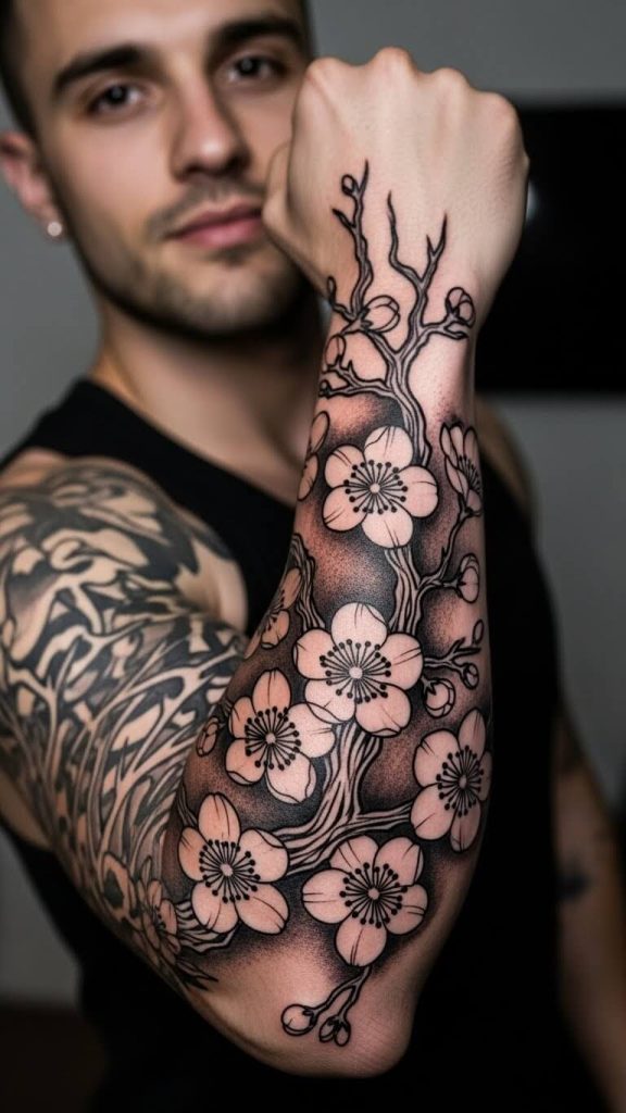 Think cherry blossoms are only feminine? Nope—cherry blossom tattoo men designs are becoming more popular than ever.