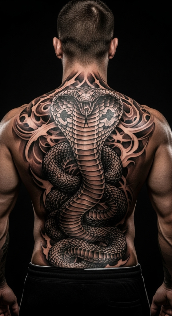 5. Cobra Tattoo on Back – Full Canvas, Full Story