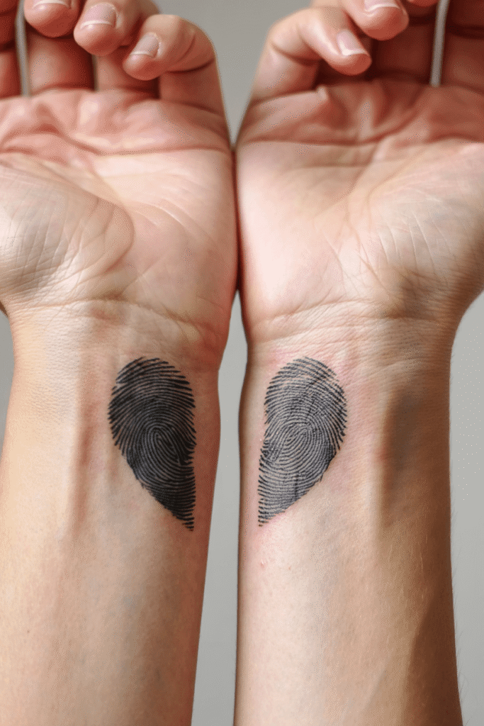 Your fingerprint plus your partner’s fingerprint makes a tattooed heart.