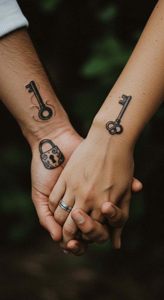 Of course, you might be wondering: “But what if things don’t work out?” Fair point! That’s why I’ve also included some couple tattoos that aren’t obvious—subtle designs that stand on their own but carry special meaning for you two.