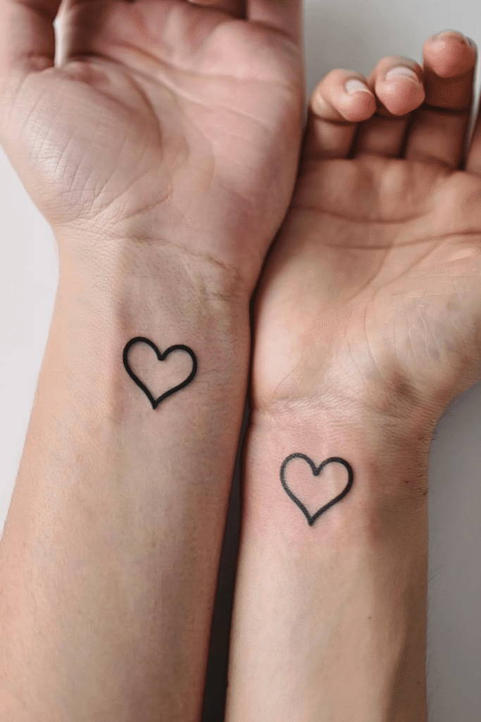 Sometimes, less is more. Couple tattoos minimalist designs like tiny heart outlines on the wrist or ankle are classic, timeless, and won’t overwhelm your skin.
