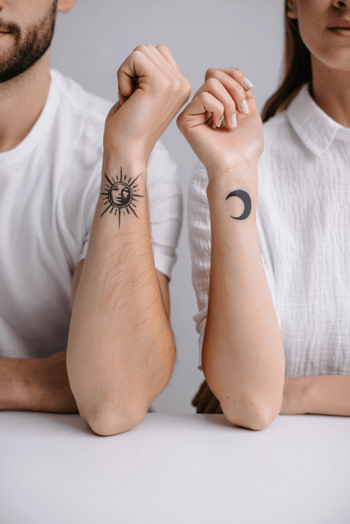 Opposites attract, right? The sun and moon combo is one of the most symbolic tattoos for couples.