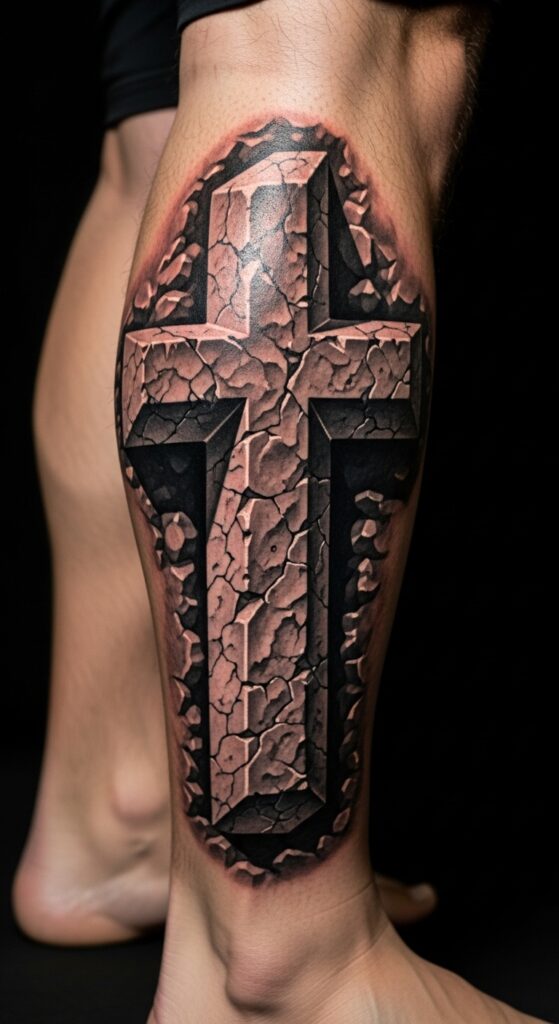 How to rock it: Add shadows for depth or highlights for glow. This suits cross tattoos for women on the thigh for curve play, or cross tattoo for men on the calf for muscle emphasis. The realism makes the cross tattoo meaning feel alive—faith in your face.