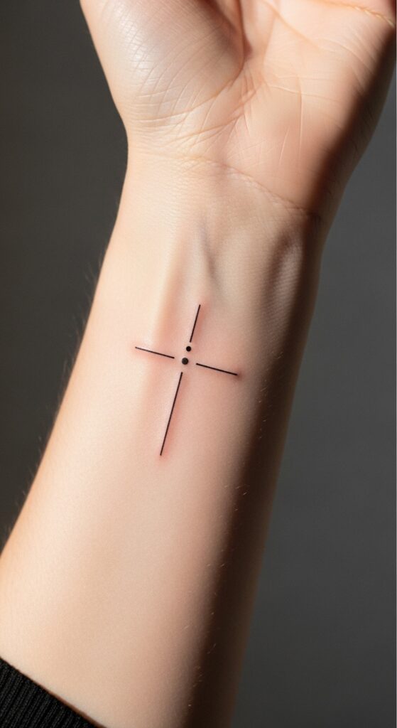 Who says a tattoo has to scream to make a statement? A minimalist cross tattoo is all about clean lines and quiet power—think a tiny outline that whispers faith or remembrance. It’s ideal for first-timers or anyone craving beautiful cross tattoos without the fuss.