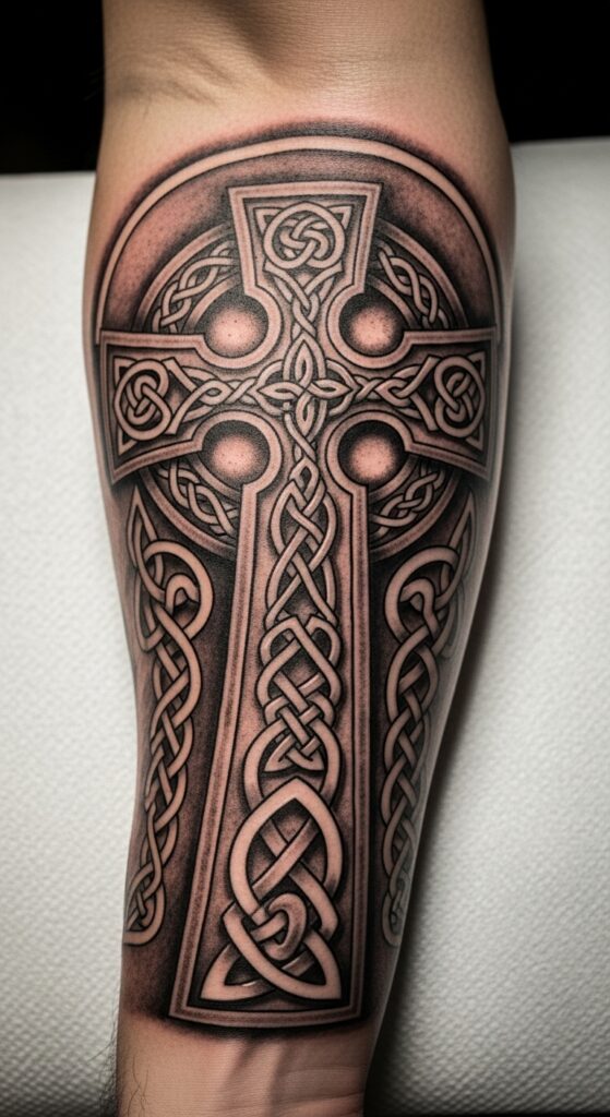 Picture this: intricate knots weaving around a bold cross, symbolizing eternal life and faith. The Celtic cross is a powerhouse in the tattoo world, blending ancient vibes with modern edge. It’s perfect if you want something with history—origins trace back to Ireland, where it stood for Christianity meeting pagan roots.