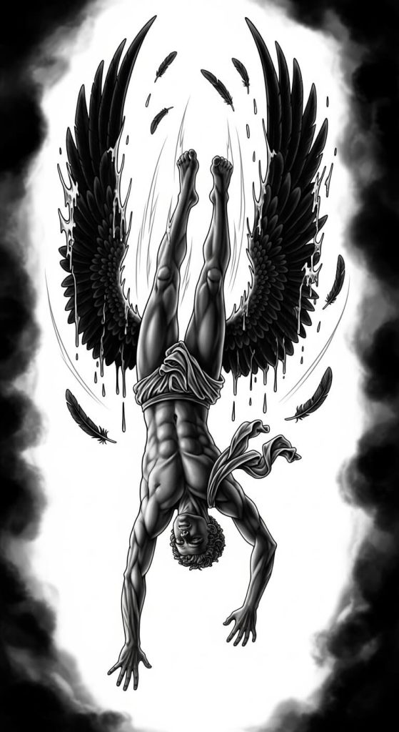 Let’s start with the most iconic style: Icarus tattoo falling. If you’ve ever felt like you pushed too hard, tried too much, or flew too close to the sun in life — this design hits you right in the feels.