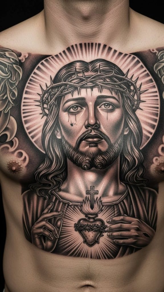 A jesus tattoo chest sits close to the heart. That alone makes it incredibly symbolic. It’s often chosen by people who view faith as their emotional core.