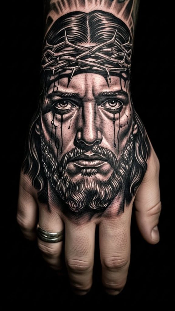 4. Jesus Tattoo on Hand or Neck: Bold Faith, No Filters