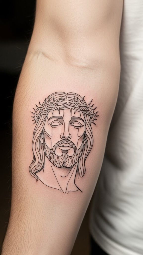 A jesus tattoo simple female design often blends softness with strength. Think fine lines, delicate shading, and symbolic elements rather than bold realism.