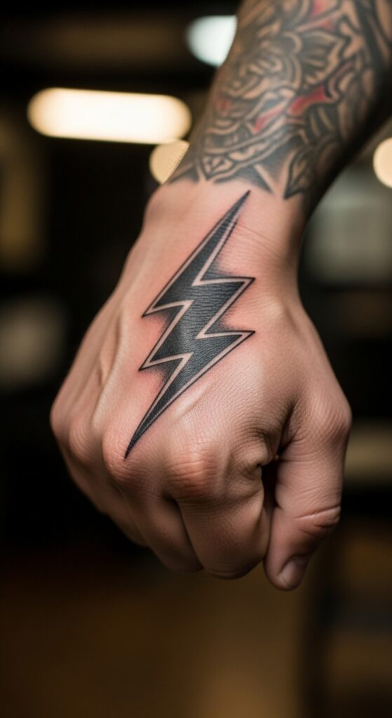 You know that jolt of excitement when you spot a clean, bold design? The classic lightning tattoo on hand screams edge and visibility. It symbolizes raw power and quick change, perfect if you’ve overcome something big in life.