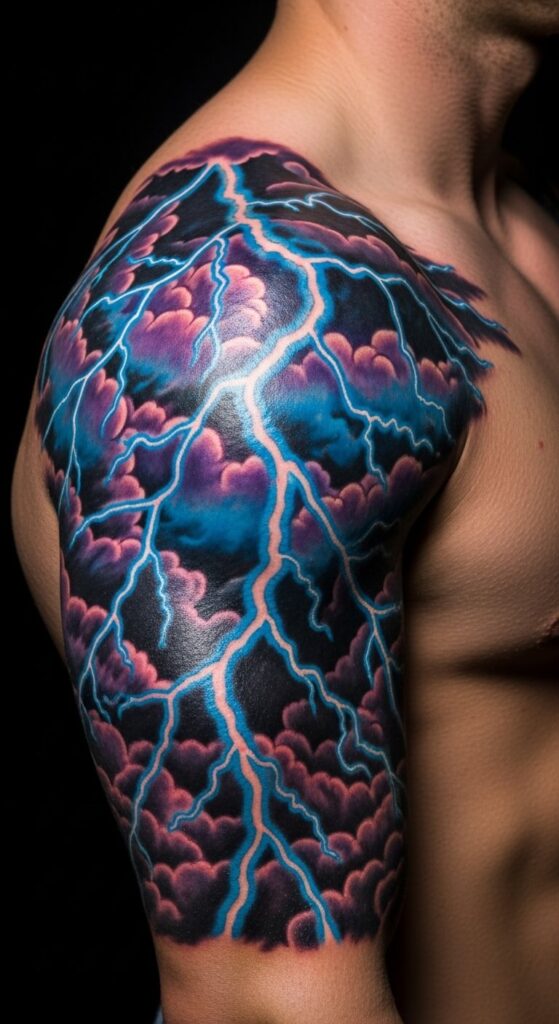 3. Epic Lightning Tattoo on Shoulder