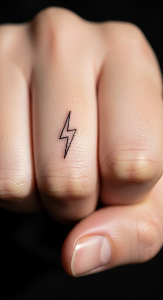 9. Subtle Spark: Lightning Tattoo on Finger