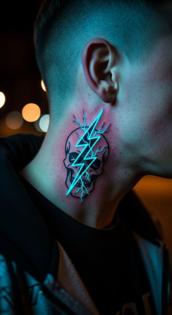 7. Rebellious Lightning Tattoo on Neck