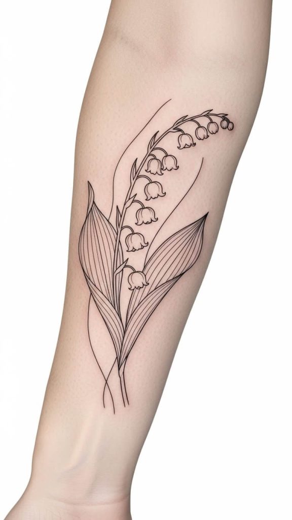 A regular lily tattoo often symbolizes confidence, rebirth, or femininity. The lily of the valley, however, leans more toward humility, renewal, and emotional depth.