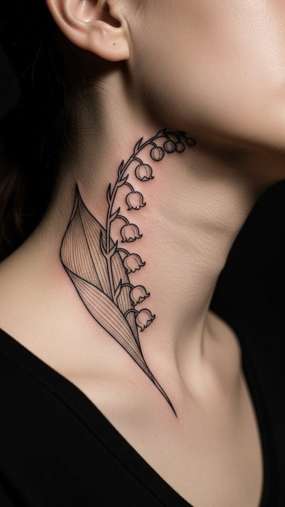 Now let’s talk statement pieces. A lily of the valley tattoo hand or lily of the valley tattoo neck isn’t for the faint-hearted—but wow, it looks stunning.