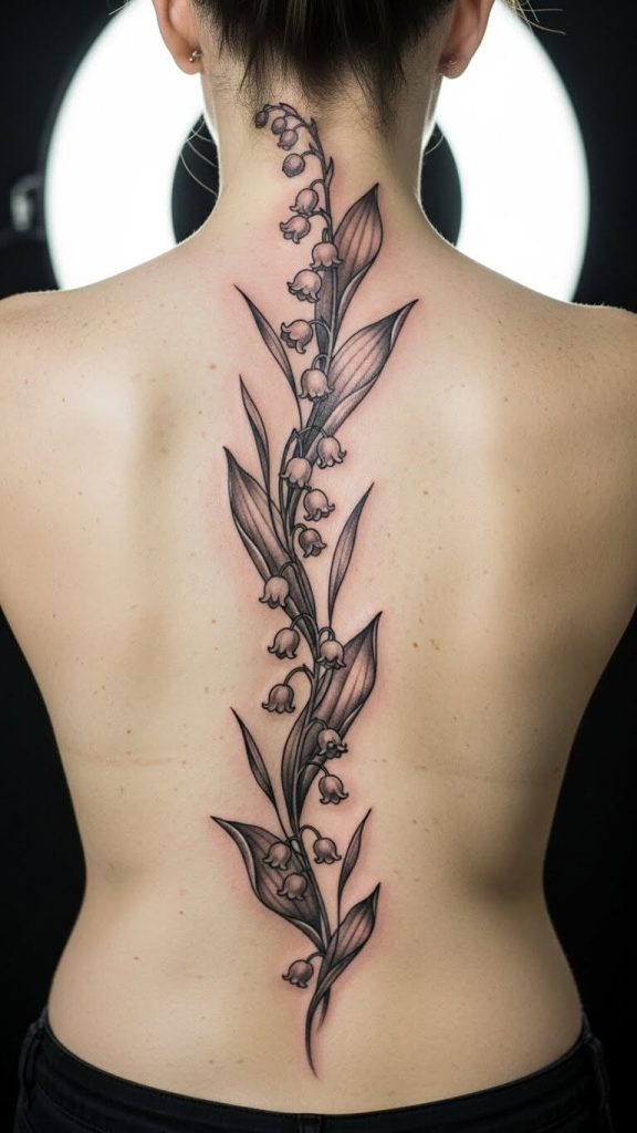 For larger designs, a lily of the valley tattoo leg or lily of the valley tattoo back gives artists room to play.