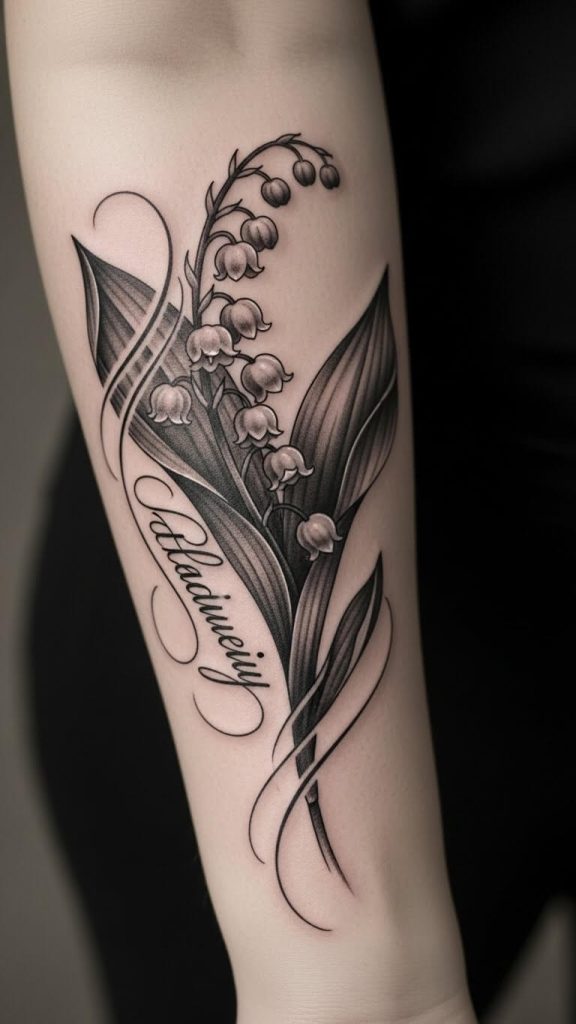 Want to make your tattoo deeply personal? A lily of the valley tattoo with name might be the move.