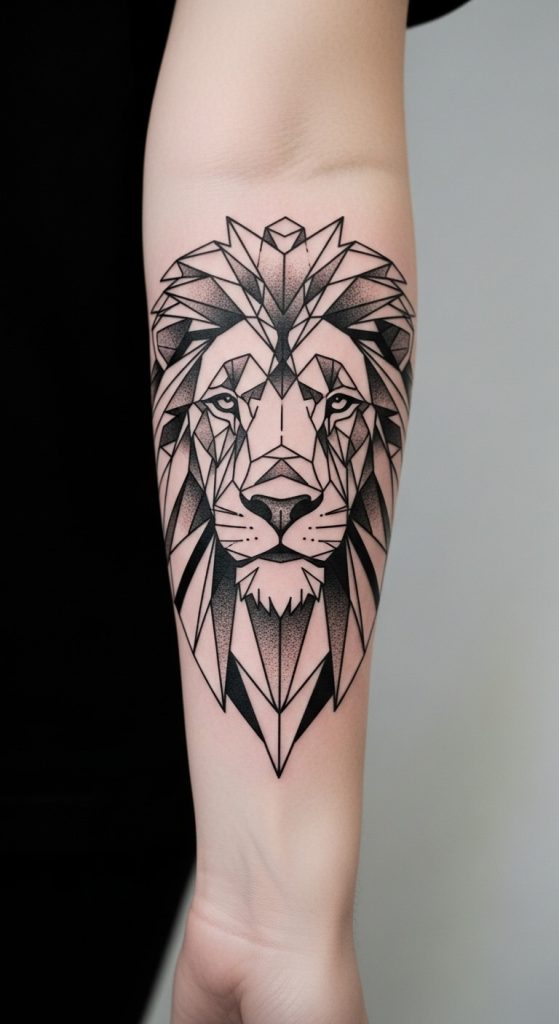 3. Geometric Lion Tattoo (Modern and Aesthetic)