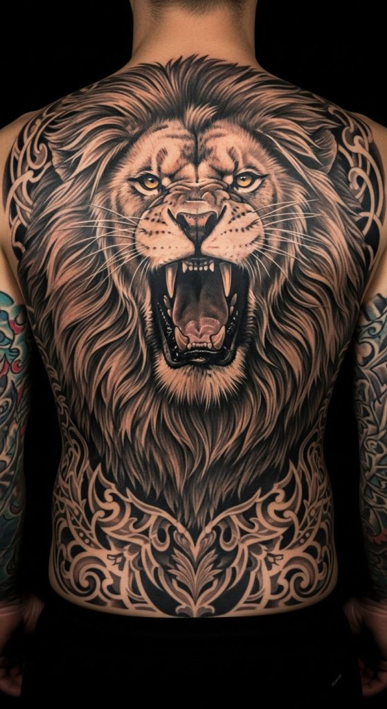 6. Lion Tattoo on Back (The King’s Throne)