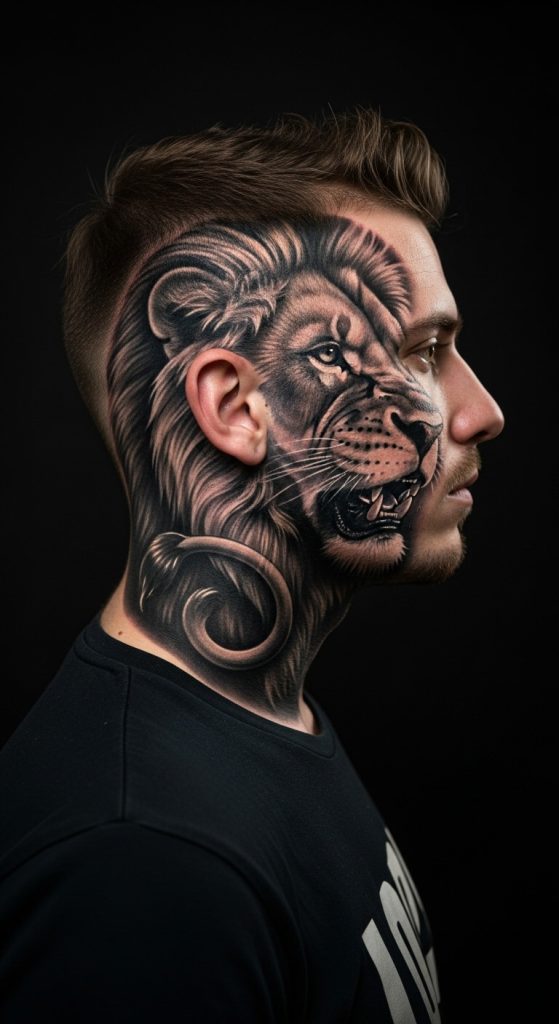 5. Lion Tattoo on Neck (Fearless and Intense)