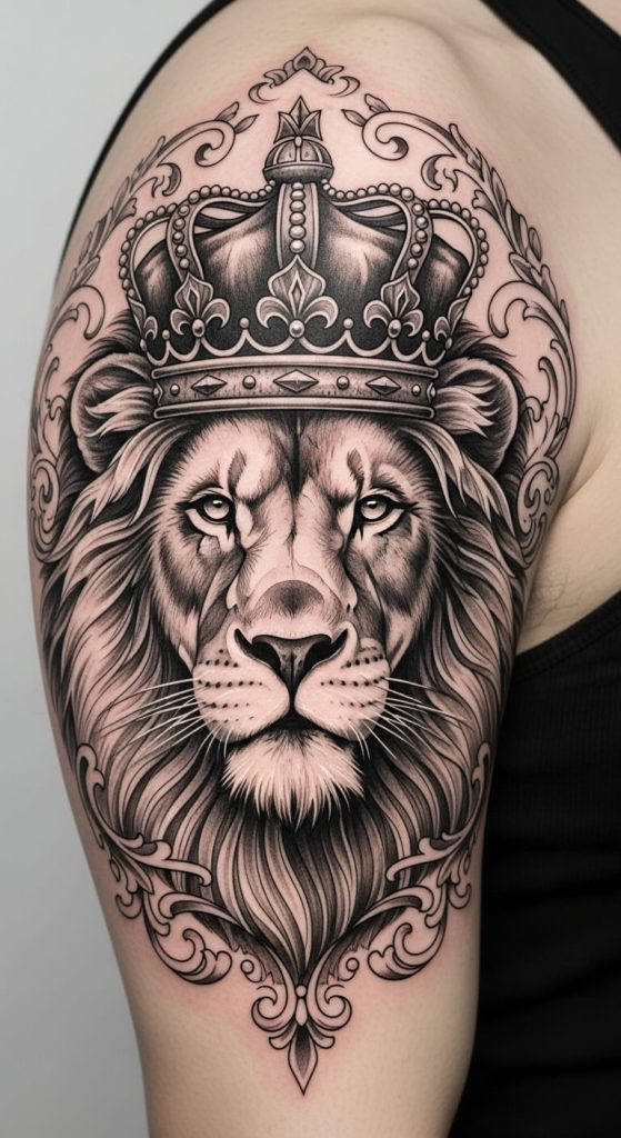4. Lion and Crown Tattoo (Royal and Dominant)