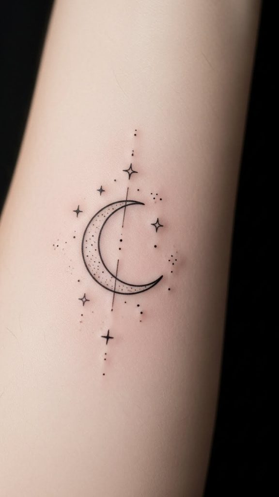 This design works beautifully as a moon tattoo small, especially if you’re into subtle body art.