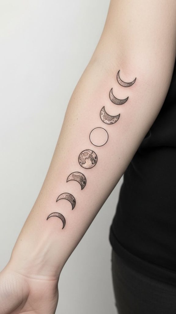 A moon phases tattoo tells a story—your story. From new moon to full moon, it represents growth, cycles, and self-acceptance.