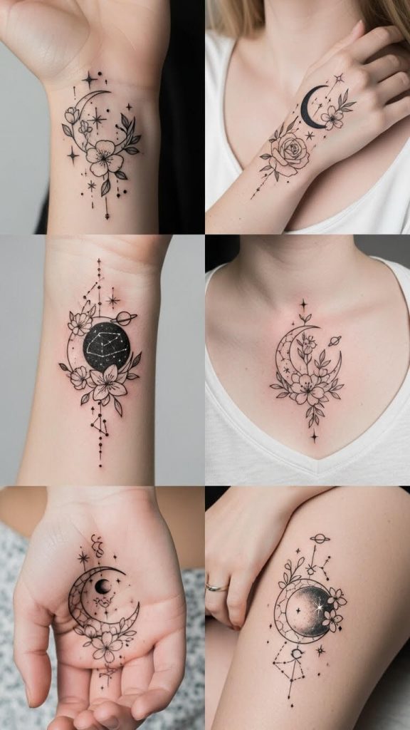 These are especially popular among those looking for unique moon tattoos for females that don’t feel generic.