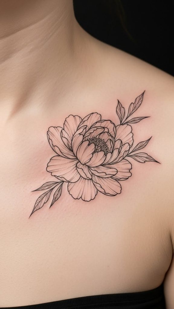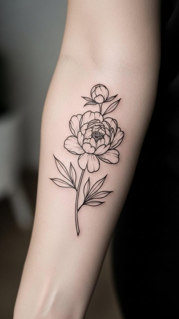 3. Fine Line Peony Tattoo (Soft but Sophisticated)