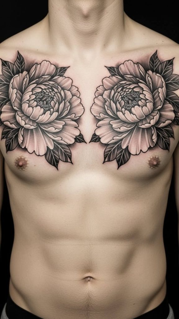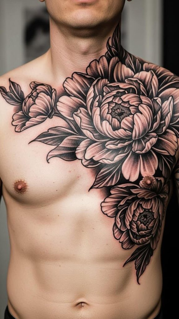 7. Peony Tattoo for Men (Strength Meets Elegance)