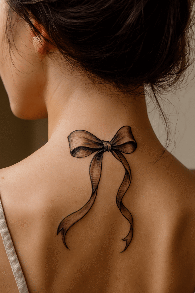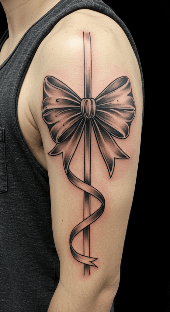 You’ve probably seen the bow tattoo meaning popping up everywhere. A bow can represent elegance, femininity, and the idea of tying things together. When paired with a ribbon tattoo, this design creates a harmonious, cute, and often playful look. A ribbon tattoo bow is ideal for those who want a fun, meaningful piece of art.