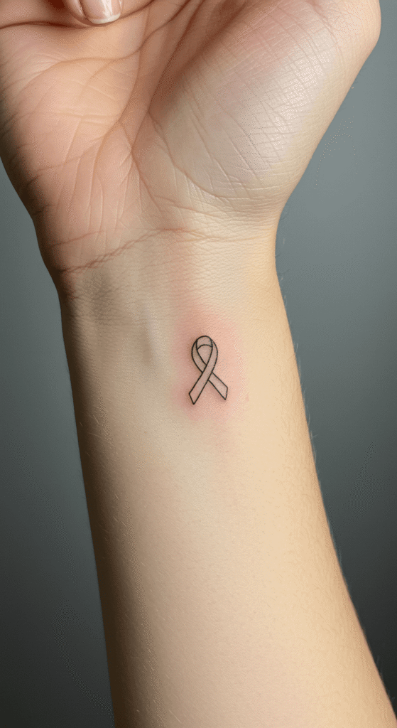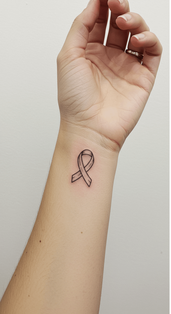 A little ribbon tattoo is perfect for those who love small, discreet tattoos. These tiny tattoos may not have all the grand detail of a full design, but they still carry significant meaning. A little ribbon on your finger, wrist, or behind your ear can say a lot while remaining simple and sweet.