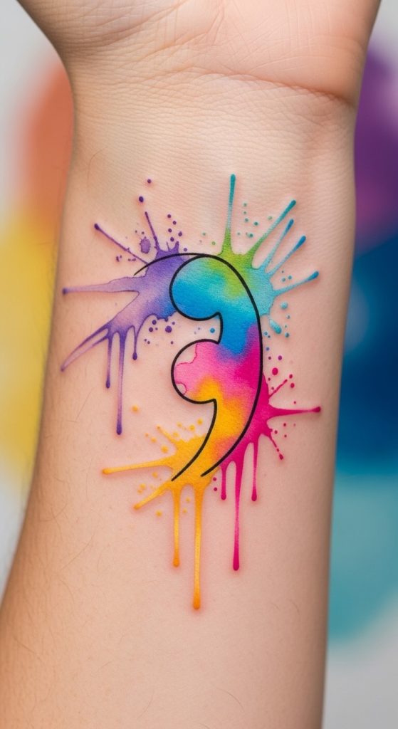 Who says semicolons have to be black? Colored semicolon tattoos are vibrant and playful.