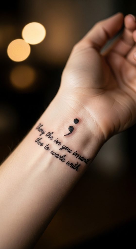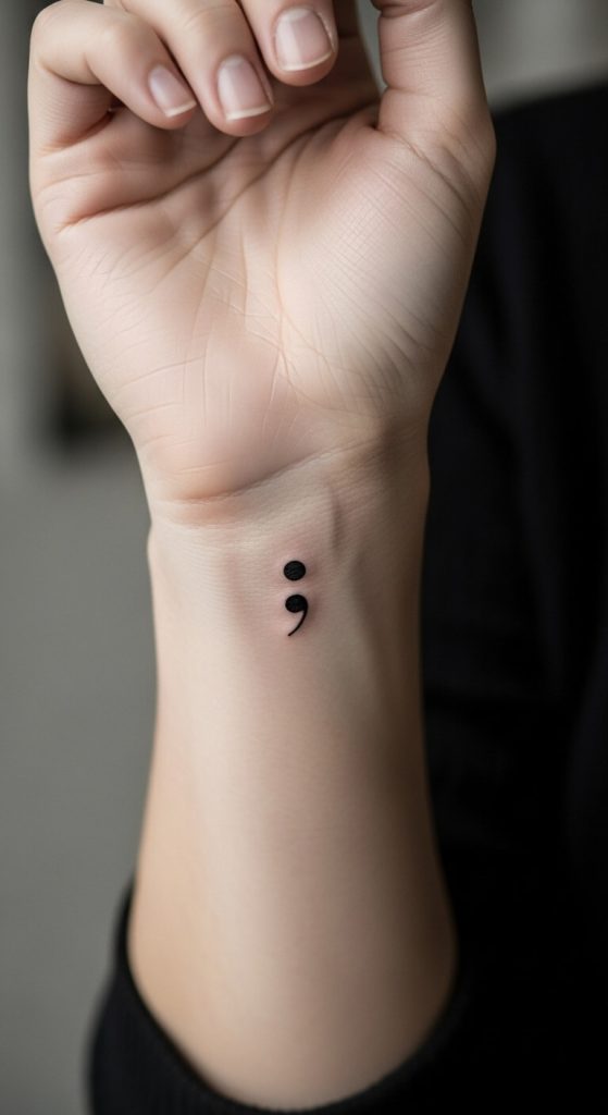 If you’re a fan of subtlety, the minimalist semicolon tattoo is perfect. Tiny, elegant, and easy to hide if needed, these small tattoos pack a punch.