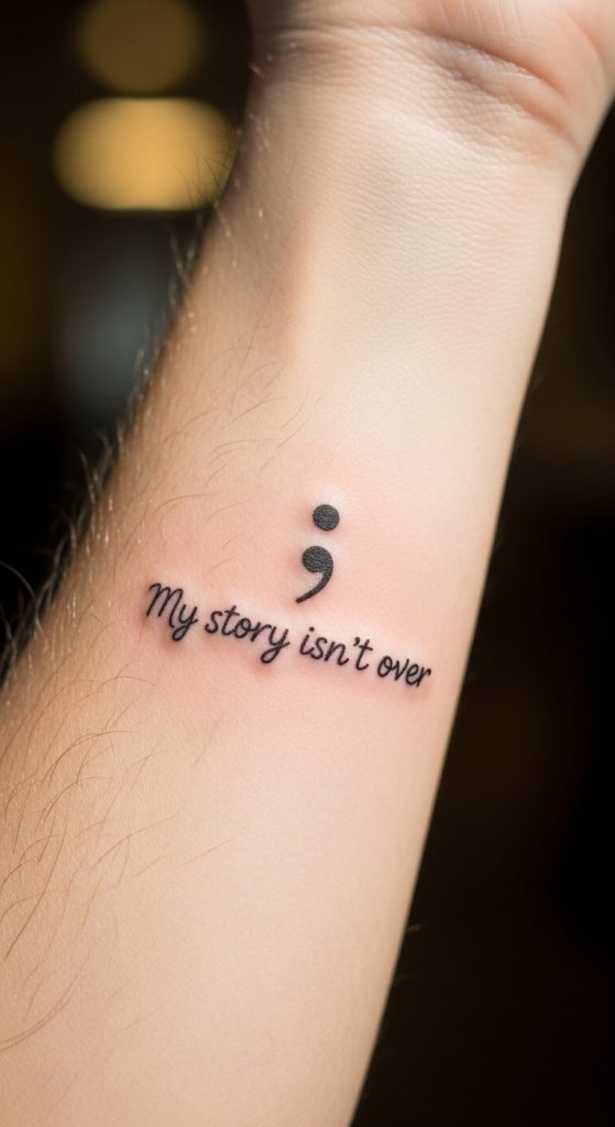 Some of the most moving semicolon tattoo ideas include a quote. Think of phrases like “My story isn’t over” or “Still I rise.”