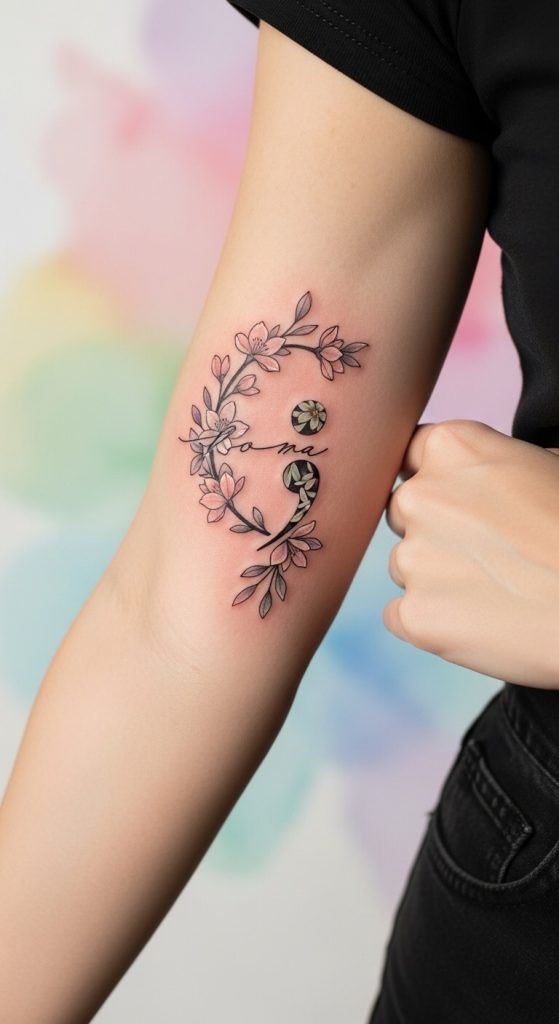 - Popular Designs: Floral semicolon, semicolon with heart, or minimalist script.
