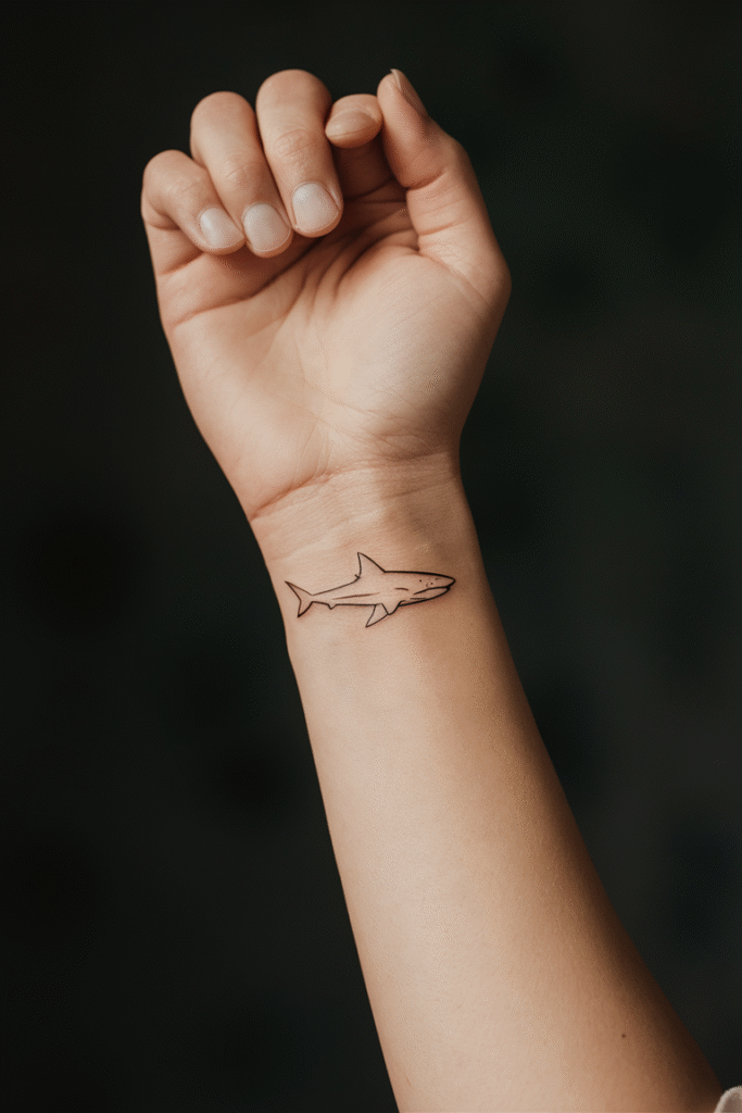 Small doesn’t mean boring—pair it with minimalist lines or opt for a shark tattoo outline look.