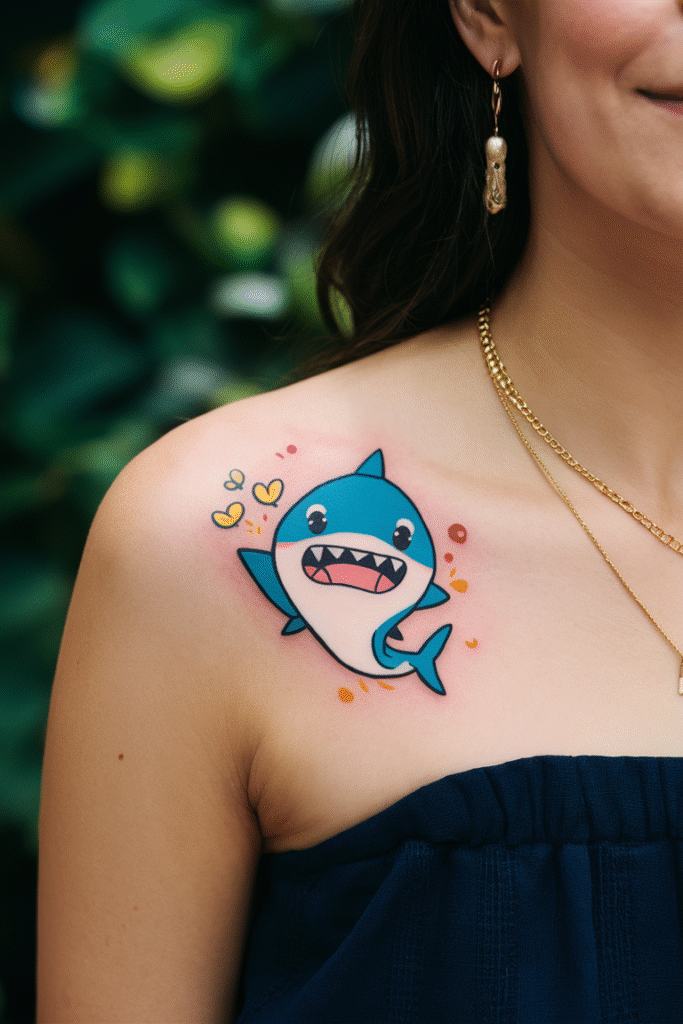 Who says sharks can’t be adorable? A shark tattoo cute enough to melt hearts is a great conversation starter.