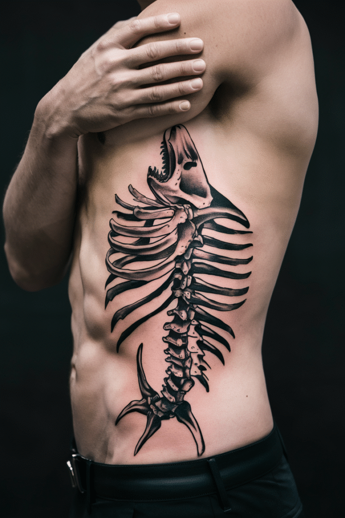 If you’re into dark, edgy art, a skeletal shark hits different. It blends mortality and resilience, giving a “death can’t even touch me” vibe.