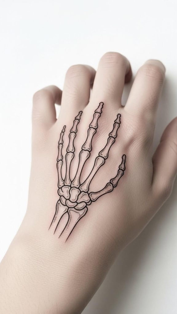 5. Easy Skeleton Hand Tattoo (Simple & Minimalist)