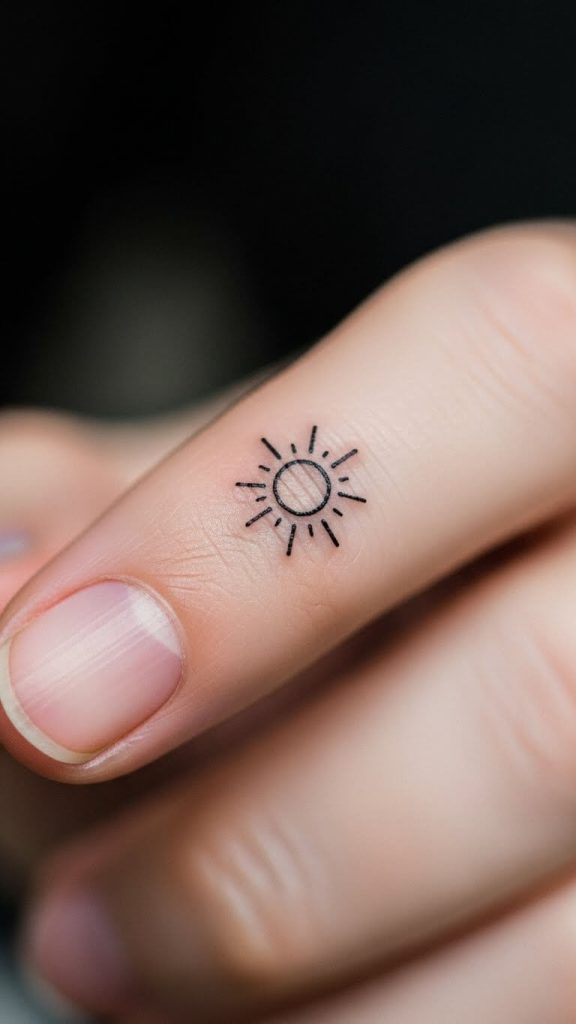 A sun tattoo on finger is perfect if you love subtle, symbolic tattoos. These usually fall under sun tattoo small or sun tattoo minimalist styles.