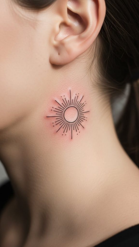 A sun tattoo on neck hits different. It’s subtle yet rebellious, especially when done in minimalist style.