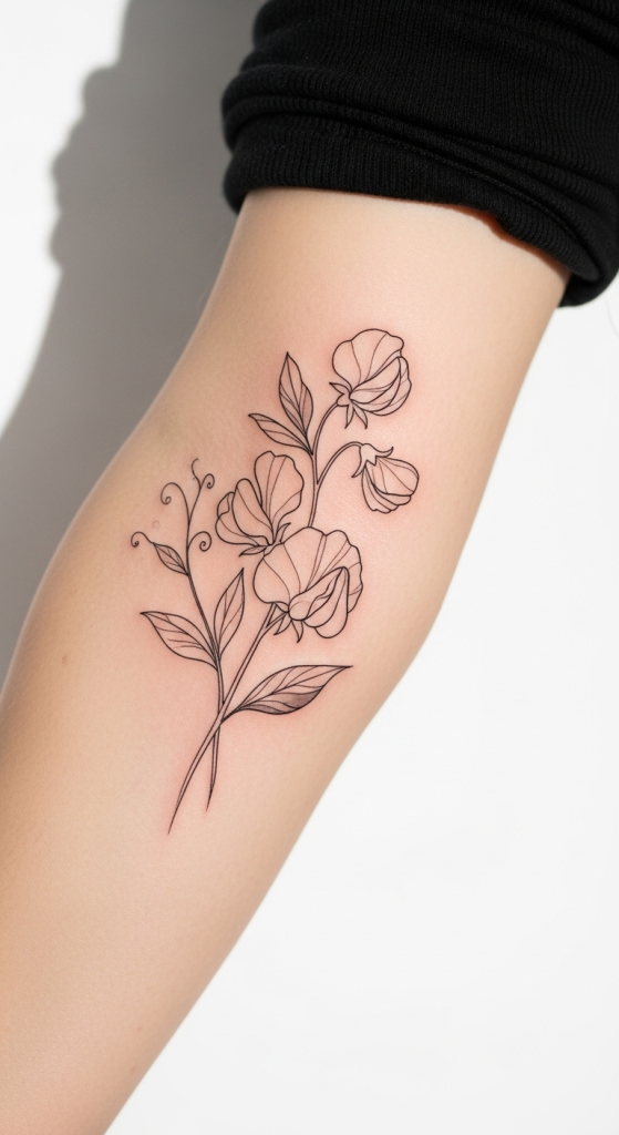 1. Sweet Pea Fine Line Tattoo (Clean, Soft, and Timeless)