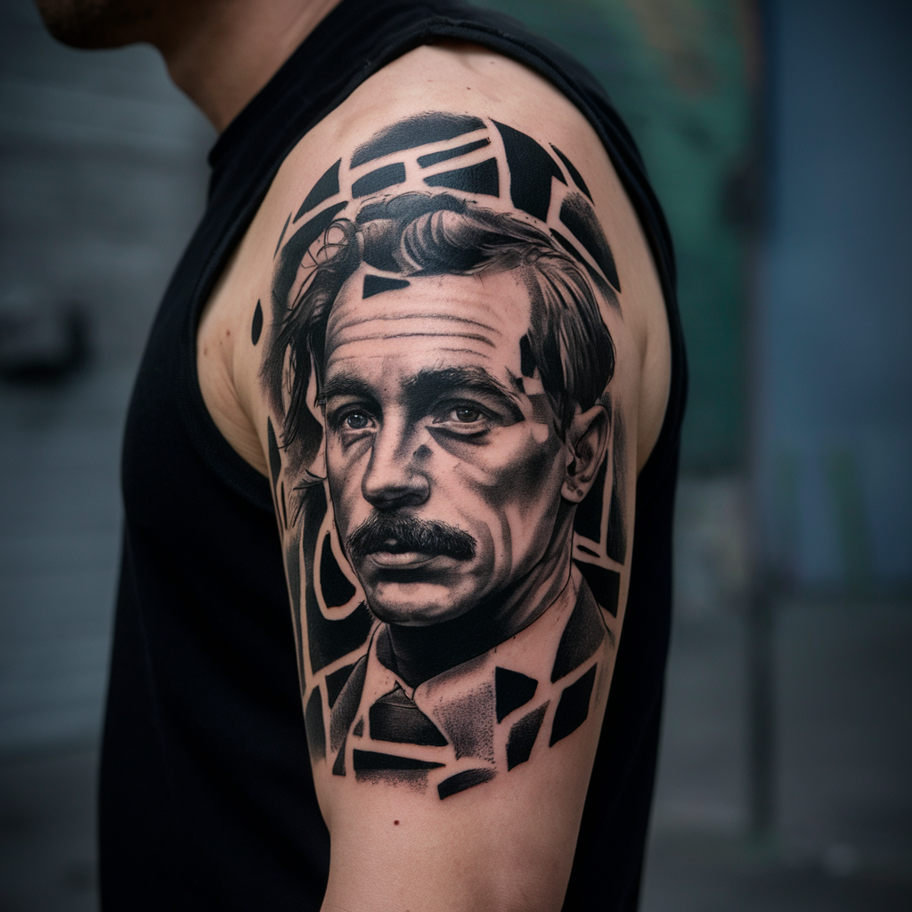 - Strong symbol-based tattoos like compasses, eyes, or gears