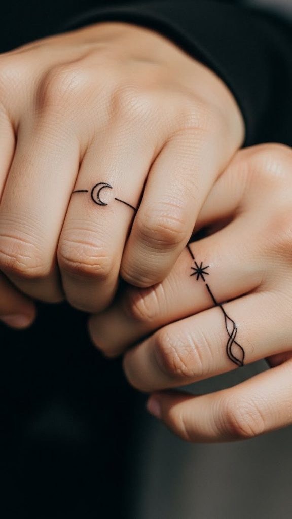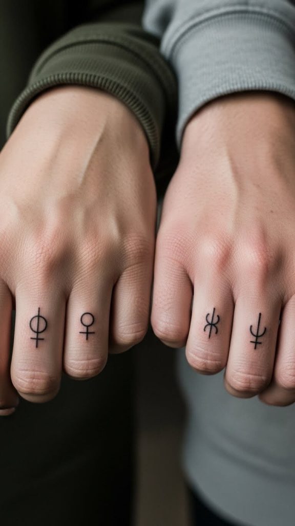 A couple tattoo on finger often replaces traditional rings. Symbols like hearts, infinity signs, or dates work best.