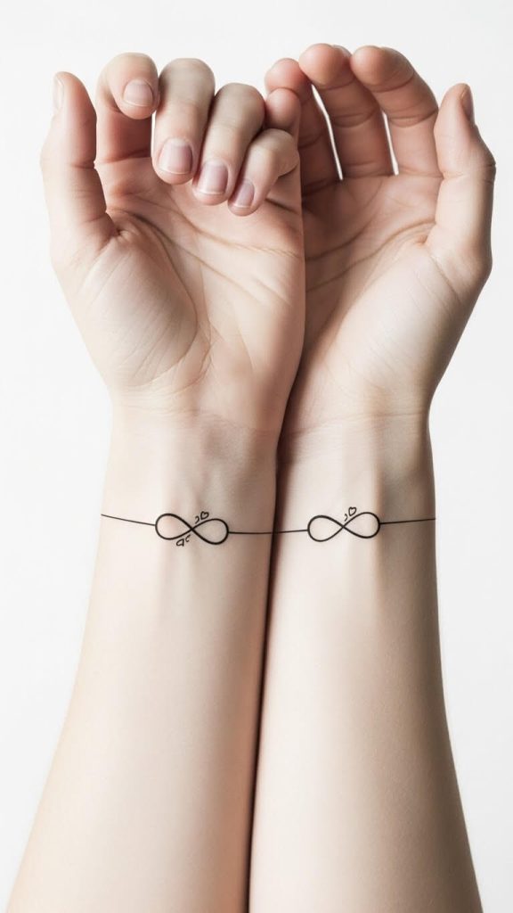 An infinity couple tattoo symbolizes endless love, loyalty, and “we’re in this forever” energy. You can keep it minimal or personalize it with initials, dates, or tiny symbols.