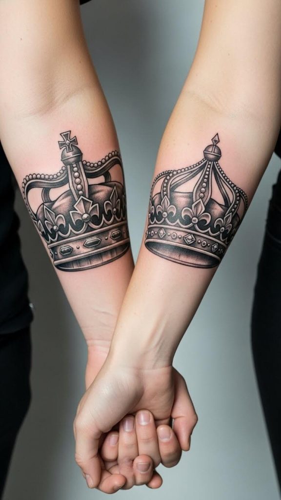 Tattoo ideas for couples king and queen designs are perfect for partners who see each other as equals. Crowns, chess pieces, or even subtle “K” and “Q” lettering work beautifully.