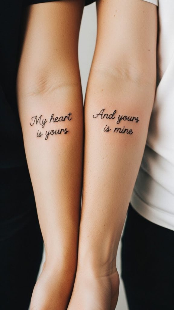 A couple tattoo on chest is usually hidden, making it feel more private. Quotes, symbols near the heart, or mirrored designs are popular choices.