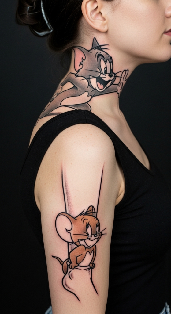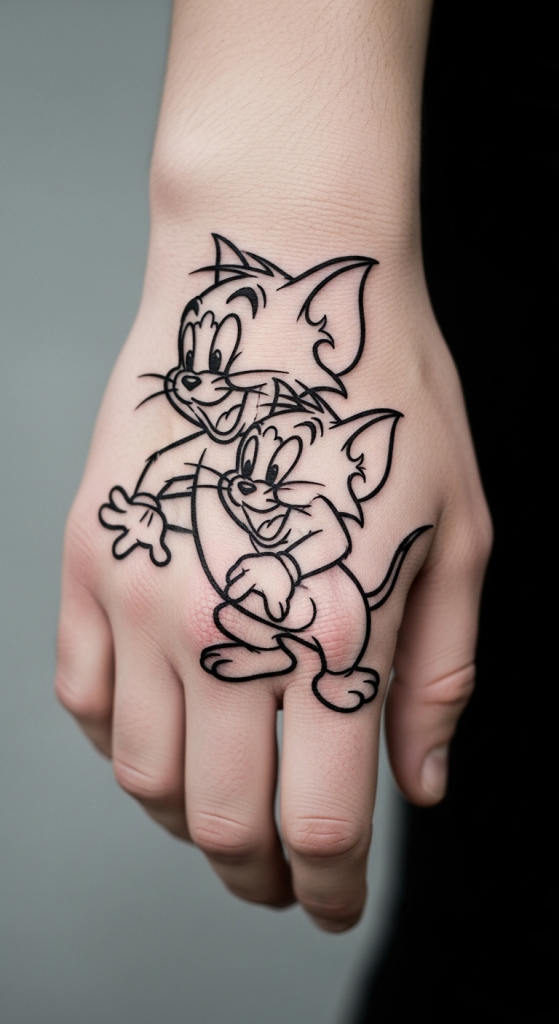 Let’s talk statement placements. A tom and jerry tattoo hand, neck, or leg screams confidence. These spots aren’t for everyone, but when done right, they’re unforgettable.